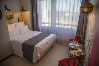 Like its exotic character, thanks to its elegant design and warm colors, the double room will quickly make you feel at home. Intimate and warm, it will meet the practical needs of people traveling alone or for business. Each of them has a shower and all the necessary accessories for everyday life, wifi, USB socket, hairdryer, welcome tray with tea, coffee and kettle.