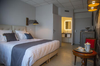 Like a restful Provençal morning, thanks to its elegant design and its mastic colors, the Superior room is an ideal room for friends or family wishing two separate beds or a large bed. It has been designed in such a way as to make its atmosphere friendly. Intimate and warm, it will meet all your practical needs. Each of them has a shower and all the necessary daily accessories, wifi, USB socket, hair dryer, welcome tray with tea, coffee and kettle.