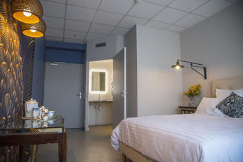 A l'image d'une fleur sophistiquée, grâce à son design élégant et ses couleurs de brouillard de Brest, la chambre Twin supérieure est une chambre idéale pour les amis ou la famille souhaitant deux lits séparés ou un grand lit. Elle a été pensée de manière à rendre son ambiance conviviale. Intimiste et chaleureuse, elle saura répondre à tous vos besoins pratiques. Chacune d'elle possède une douche et tous les accessoires nécessaires au quotidien, wifi, prise USB, sèche-cheveux, plateau d'accueil avec thé, café et bouilloire.